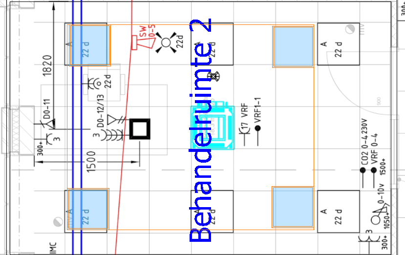 Aan de hand van een project van ITN Groep laat Juda de gevolgen zien van een herberekening. “Dit project bestaat uit diverse ruimten. Neem deze behandelruimte waar in de aangeleverde lichttekening 6 armaturen zijn ingetekend. Na herberekening blijken 4 armaturen voldoende. Dit is bereikt door armaturen toe te passen met een hogere lichtopbrengst.”