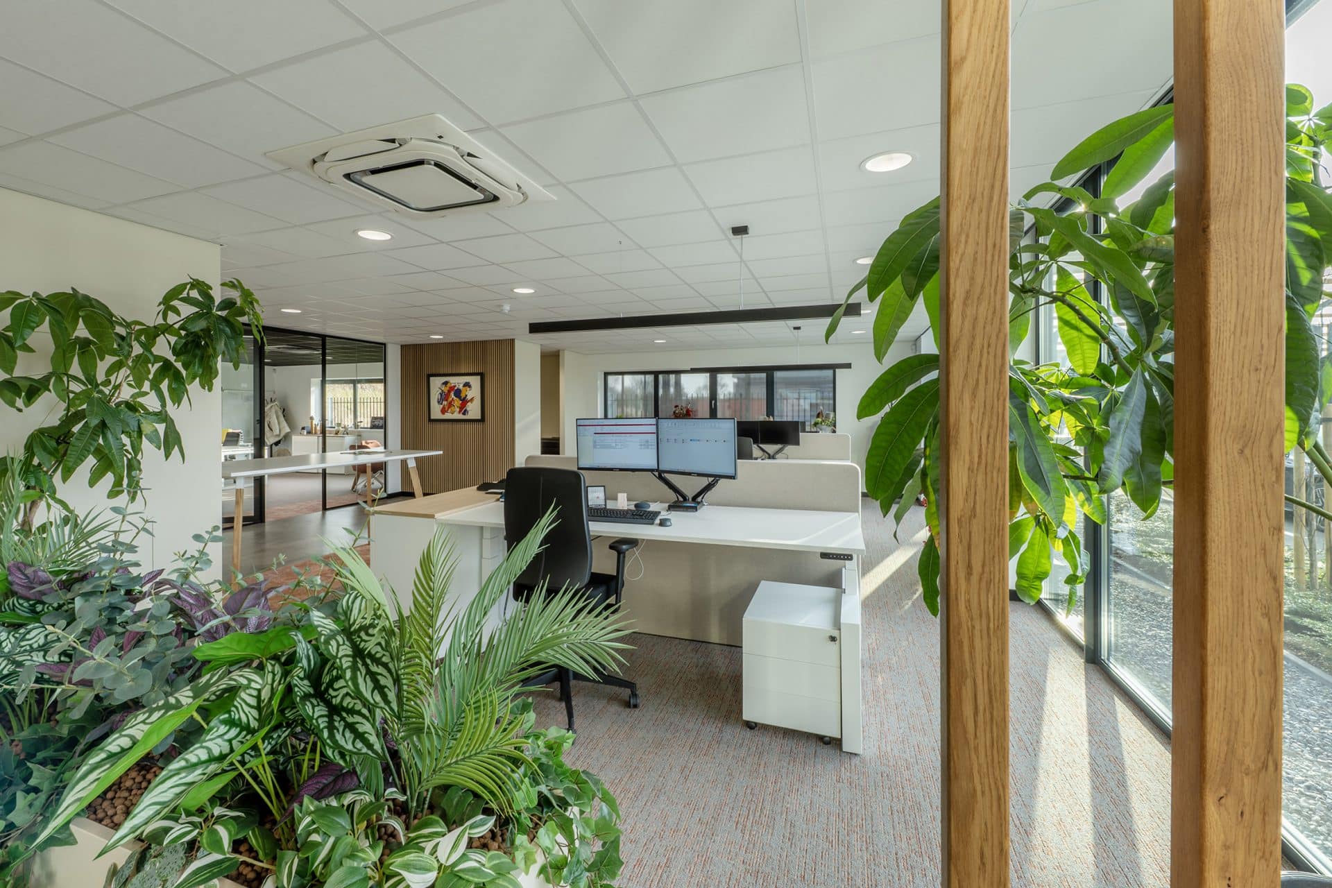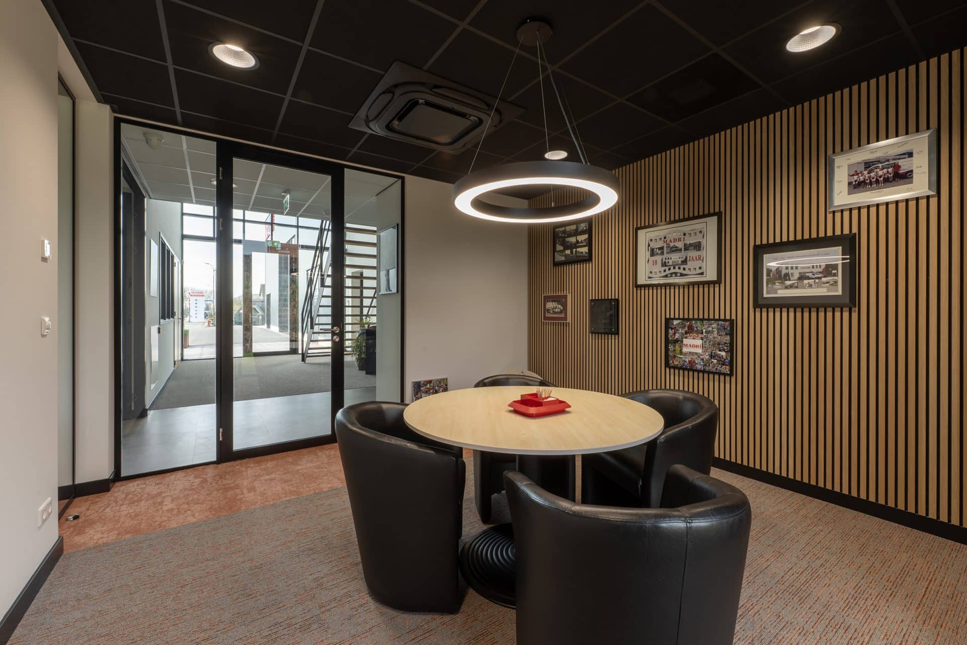 Madri Totaalinstallateur uit Steenbergen is een groeiend installatiebedrijf met een team van meer dan 25 professionals. Madri is gespecialiseerd in onder andere cv & gas, elektra, water, warmtepompen en zonne-energie. Om die groei te faciliteren bouwde het bedrijf een nieuw bedrijfspand met kantoorruimtes, een magazijn en buitenterrein. Omdat het pand ook als ontvangstruimte voor klanten fungeert, was een representatieve en sfeervolle uitstraling essentieel.