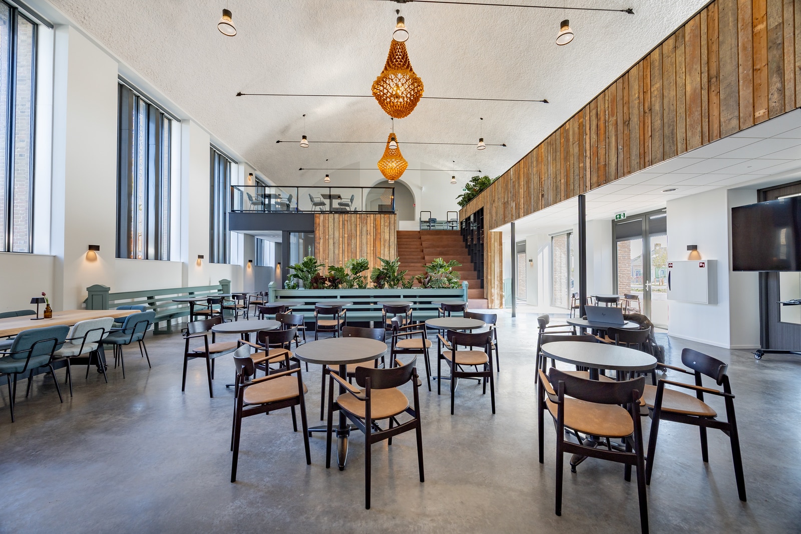 Een passende lichtoplossing ontwerpen bij de schuine plafonds en de complexe inpassing in de oude kerk is een uitdaging. Maas & Hagoort heeft daarom een doordacht lichtontwerp met kantelbare spots voor de kerkzaal geleverd. Hiermee voldoet de ruimte aan de vereiste luxwaarden. Naast kantelbare spots is er door onze sales engineers gekozen voor chique staande lampen en hangende sfeerverlichting. Naast deze sfeerverlichting is er ook aanvullende noodverlichting geleverd. Deze toepassingen zorgen samen voor een gelijkmatige lichtverdeling en een sfeervolle, functionele omgeving. Dit draagt bij aan het voldoen aan de gestelde NEN-EN 12464-1-norm. Onze sales engineers stellen zo zorgvuldig een lichtplan op, wat voldoet aan alle gestelde normen en eisen.